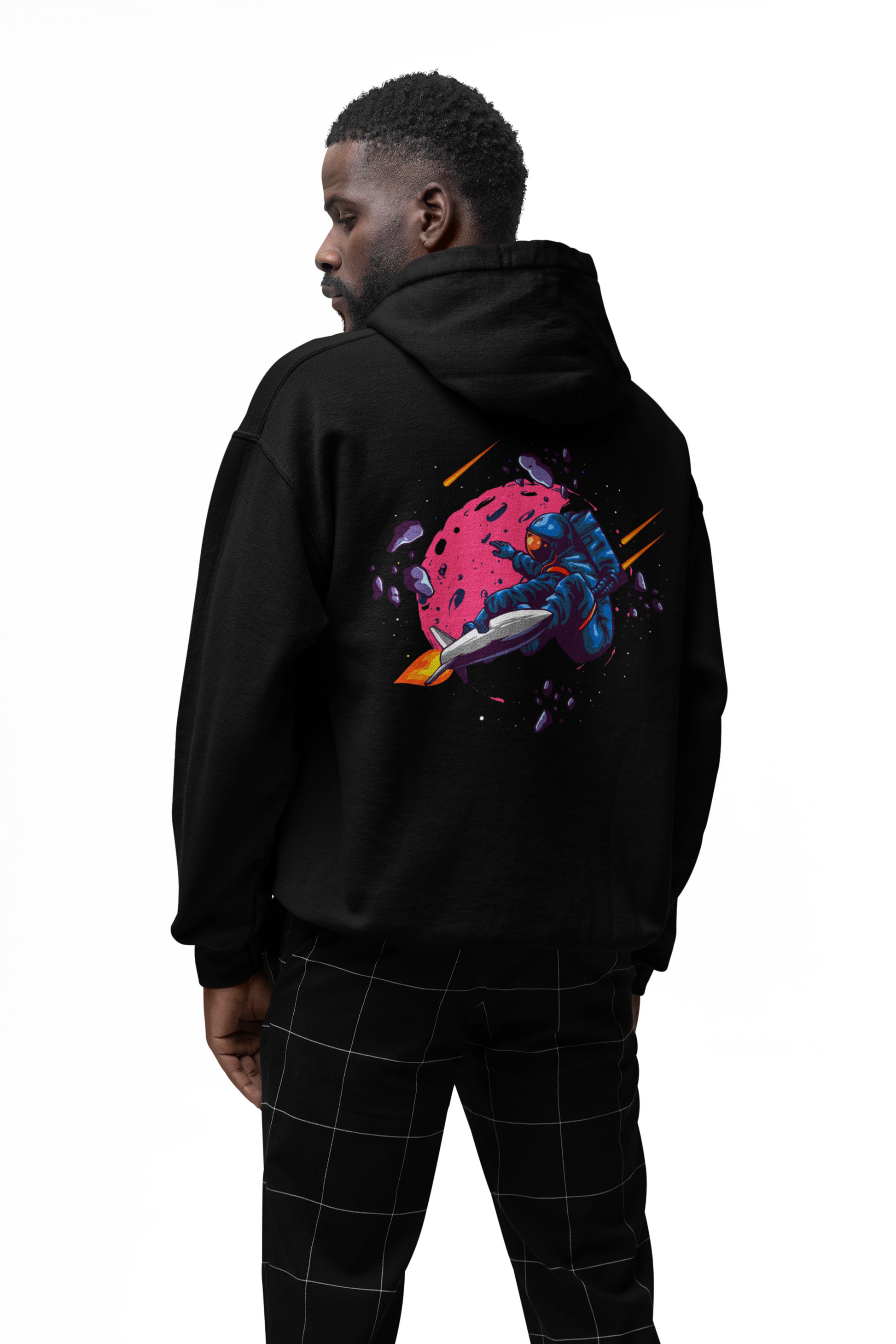 The ZATYX MOON RIDER Oversized Hoodie is designed for those who like to keep it clean upfront and bold from behind. The minimal moon icon on the front adds subtle identity, while the astronaut graphic on the back delivers a strong streetwear statement.